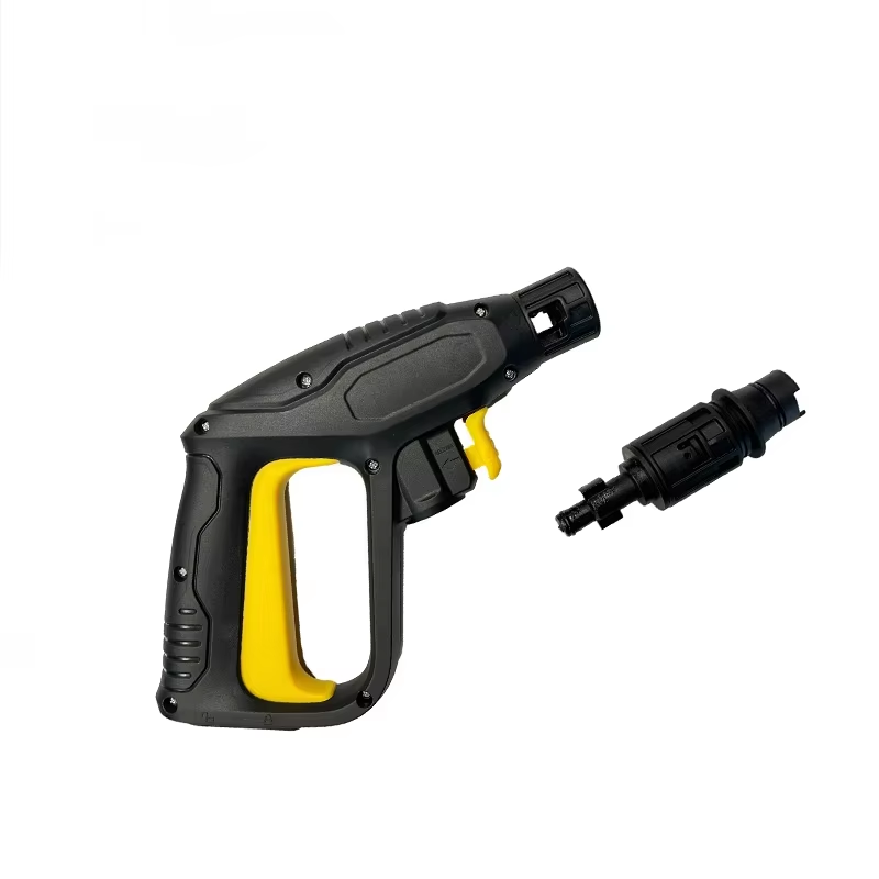 Esta pistola limpiadora de 150 bar para varias marcas tiene una amplia gama de adaptabilidad. Tiene un diseño de interfaz preciso, que puede ser compatible con los principales equipos de limpieza a alta presión del mercado y no requiere otros accesorios de conversión. Se puede operar cuando está enchufado. Es un equipo de lavado de autos. Una solución sin preocupaciones para actualizar y reemplazar accesorios. Además de una amplia compatibilidad, también tiene ventajas de diseño. En primer lugar, el arco del mango tiene un diseño ergonómico que se adapta a la curva de la palma humana. Incluso si se usa durante mucho tiempo, no es fácil cansarse. Al mismo tiempo, tiene un llamativo botón de disparo amarillo, que el operador puede identificar fácilmente. La respuesta del botón disparador es clara. Al ajustar la presión, el tiempo de salida del agua se puede controlar con precisión y la duración, incluso un principiante puede comenzar fácilmente. En segundo lugar, el cuerpo principal de esta pistola limpiadora de 150 bar para varias marcas está hecho de plástico de ingeniería de alta resistencia, que tiene una excelente resistencia a la corrosión y al impacto, y no es fácil de romper. El peso total también es más ligero tras la optimización. Al mismo tiempo, con la manguera flexible de alta presión, el operador puede ajustar fácilmente el ángulo según el uso, y también se pueden realizar fácilmente todo tipo de limpieza de ángulos muertos. Finalmente, el principal escenario de uso de esta Pistola Lavadora de 150bar para Múltiples Marcas es la limpieza de automóviles, pero también se puede utilizar en otros campos, como la limpieza diaria del hogar, que puede limpiar el polvo y las hojas del piso exterior. También puede reducir la intensidad del flujo de agua para limpiar a la mascota, y la baja presión del agua no puede irritar a la mascota.