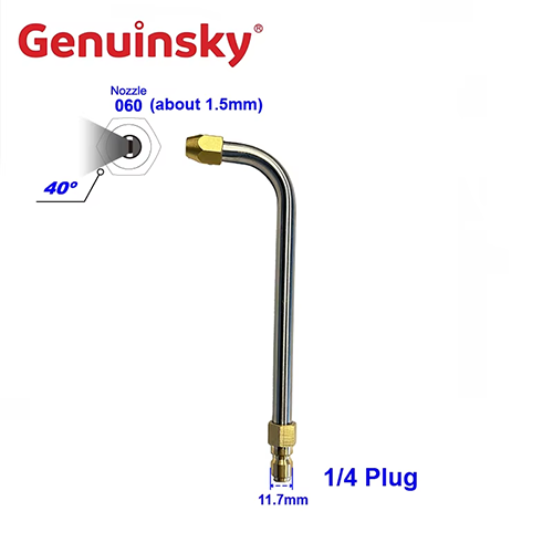Boquilla de eje doblada de 90 grados, el producto en sí es 060 Apertura estándar, que se puede adaptar a 40 ℃ pistola de limpieza de alta presión o pistola de limpieza ordinaria. Está especialmente diseñado de acuerdo con la escena de limpieza del aire acondicionado. La estructura del eje doblada de 90 ° de esta boquilla de limpieza se puede combinar bien con algunas ocasiones de limpieza, porque esta estructura se puede sondear de manera flexible. El interior del aire acondicionado puede limpiar fácilmente los huecos internos, así como lugares que son difíciles de limpiar con tuberías rectas ordinarias como filtros y sándwich de condensado. En el trabajo, se puede operar con precisión con flujo de agua de alta presión.