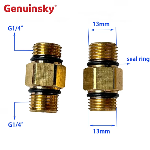 El pezón de latón con ambos hilos machos laterales G1/4 pertenece al conector del sistema de fluidos de alta presión. Genuinsky Company es una compañía especializada en la producción de accesorios de limpieza. Sus principales productos incluyen máquinas de soldadura, herramientas eléctricas, herramientas neumáticas, máquinas de limpieza y accesorios relacionados. Integramos la producción y la fabricación, y la calidad del producto y el servicio postventa están garantizados.