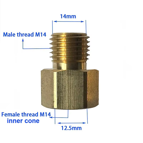 Etiquetas calientes: Boquilla cónica de latón M14x1,5 hembra a M14 macho