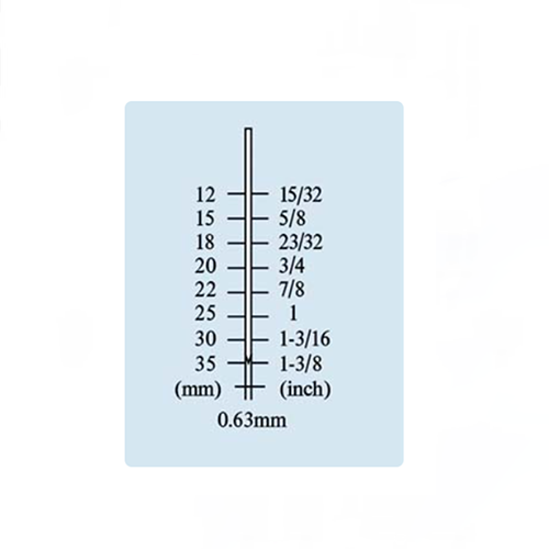 El tamaño de la uña o el pasador para el micro pinner de aire MP635 es pequeño y delgado, tamaño de 12-35 mm (15/32 a 1-3/8 pulgadas), GA23, DIA. 0.63 mm.