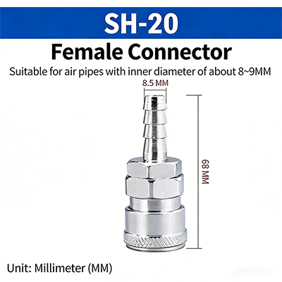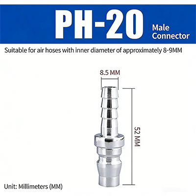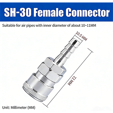 Los acoplamientos rápidos tipo C de la serie PH–SH de Genuinsky con rosca JIS PT cuentan con una estructura de conexión rápida tipo C, que permite emparejar libremente los conectores macho y hembra. La superficie galvanizada y el núcleo de la válvula de latón mejoran la durabilidad del producto. Como proveedor profesional de accesorios para herramientas neumáticas en China, Genuinsky produce sus productos de manera estandarizada. Esta serie ofrece una gama completa de especificaciones, lo que permite una combinación precisa con varias tuberías neumáticas.