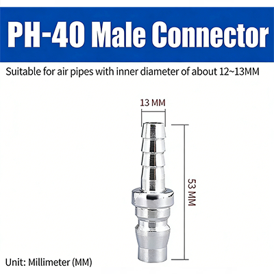 3. PH-40. Es adecuado para tráqueas con un diámetro interior de aproximadamente 12-13 mm. El diámetro del extremo del tubo de unión es de 13 mm y la longitud total es de 53 mm.