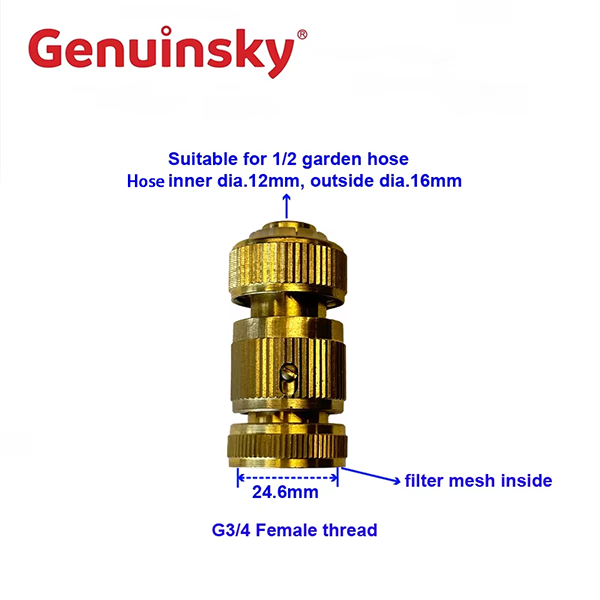 El conector de entrada de la lavadora de presión asegura la conexión estable de la tubería de entrada y cumple con los requisitos de presión de la entrada de agua de baja presión. Ningbo Genuinsky Company es una compañía especializada en la producción de accesorios de limpieza. La compañía integra la fabricación, el desarrollo y las ventas, con excelente calidad y precio preferencial. Puede estar seguro de usarlo.