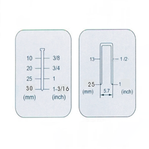 SF3025 2 en 1 clavo y grapadora es el estilo más clásico, con especificaciones de uñas GA18, 1.05x1.25 mm longitud de uña recta 10-30 mm, ancho de hombro de uña U 5.7 mm y longitud de 13-25 mm. Básicamente puede satisfacer las necesidades de muchos escenarios de uso.